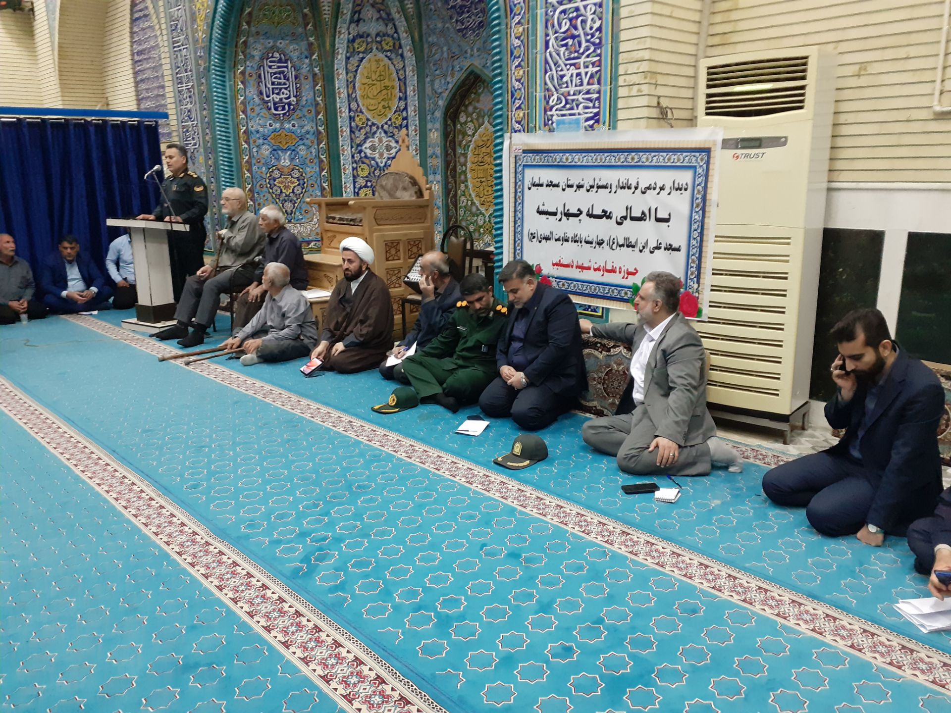 در ادامه جلسات فرماندار در مساجد ،این هفته پیمان جهانگیری فرماندار مسجدسلیمان ،شورای تامین وشورای اداری مسجدسلیمان در مسجد علی بن ابیطالب چهاربیشه میهمان اهالی این محله بودند